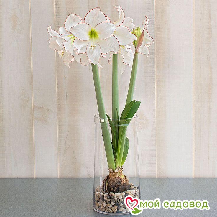 Амариллис Пикоти — многолетнее луковичное растение. Изящный амариллис Пикоти поистине удивителен! Его бутоны – это шесть огромных лепестков, окрашенных в идеально белый цвет. По краю каждого лепестка проходит настолько тонкая окантовка, что кажется, вот-вот – и она разорвется. Диаметр цветка: 15 см Высота растения: 70 см. Цветение: круглый год. Высадка луковицы На дно горшка укладываем дренаж из керамзита или мелких камешков. Слой в 2 – 2,5 см. Сверху насыпаем землю, по центру ставим луковицу и засыпаем ее по бокам, оставляя верхнюю треть луковицы без земли. Поливаем отстоянной водой комнатной температуры. После посадки луковицы, примерно через месяц должно наступать цветение, которое будет продолжаться в течение 2-х или 3-х недель. Место Амариллис очень любит светлые открытые места. Идеально подойдут южные и юго-восточные окна. На лето можно высаживать в открытый грунт с южной стороны, в защищенном от ветров месте. Не любит сквозняков, особенно в зимнее время. Температура Во время бурного цветения, ему будет комфортно при температуре в +23 – 25 °C. В ночное время, допустимо снижение температуры до +18 – 20 °C. Чтобы продлить срок цветения, можно понизить температуру окружающей среды примерно до 18 °C и  убрать излишнее освещение.